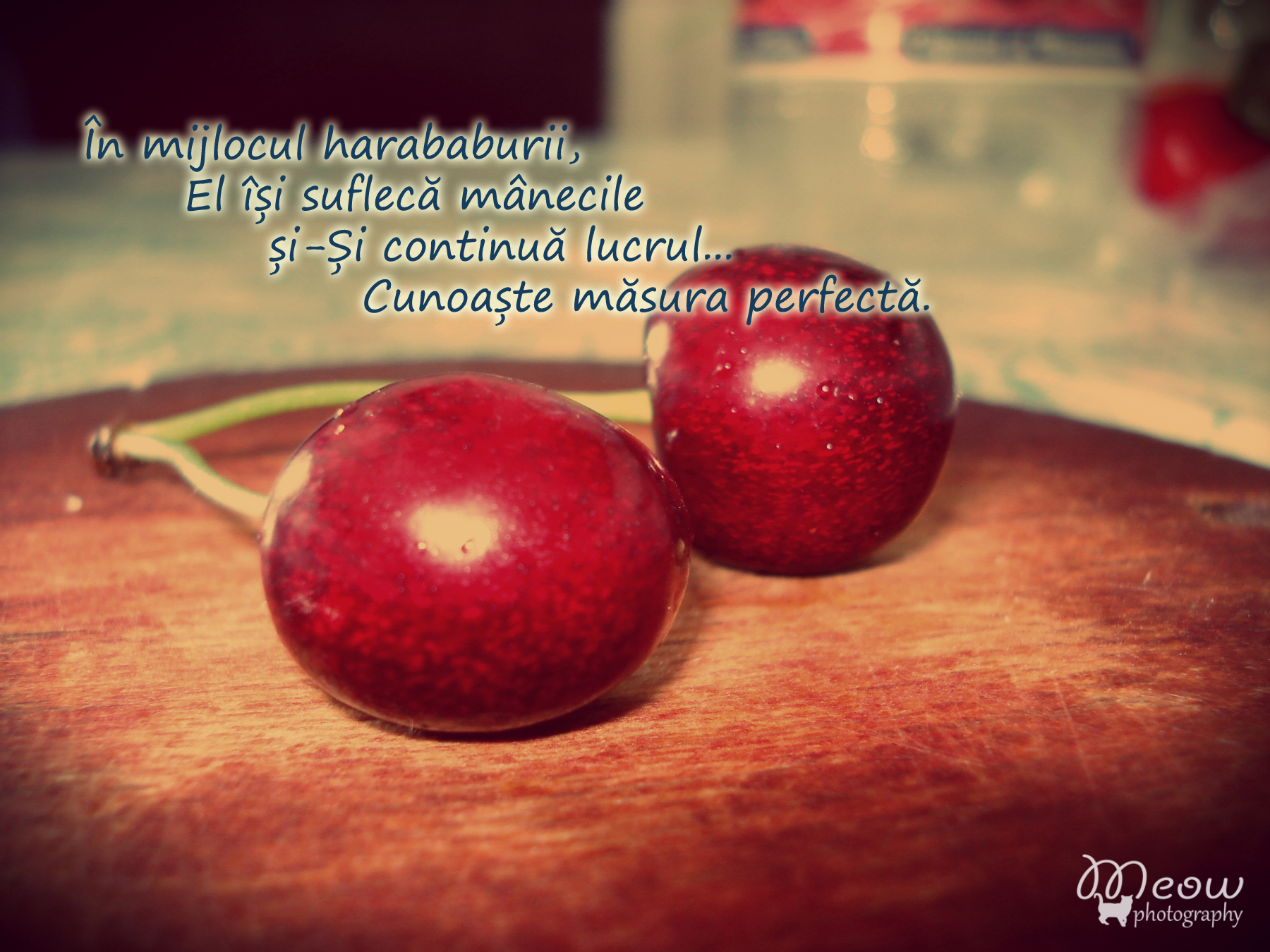 S-a lăsat deja seara, iar bucătaria e cam dezordonată după atâtea idei puse în practică și după pofta de ceva dulce. Totul e aproape gata. Doar crema pentru tortul de vișine are un aspect de lapte brânzit. Oh, iară am greșit prepararea! Ar trebui s-o iau de la capăt, dar nu mai am chef. Sunt plictisită și nemulțumită.