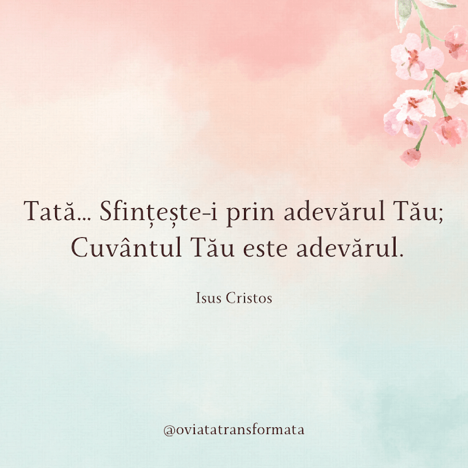 “Le-am dat Cuvântul Tău, și lumea i-a urât, pentru că ei nu sunt din lume, după cum Eu nu sunt din lume. Nu Te rog să-i iei din lume, ci să-i păzești de cel rău. Ei nu sunt din lume, după cum nici Eu nu sunt din lume. Sfințește-i prin adevărul Tău: Cuvântul Tău este adevărul.” – rostește Isus în rugăciunea Sa către Tatăl.
