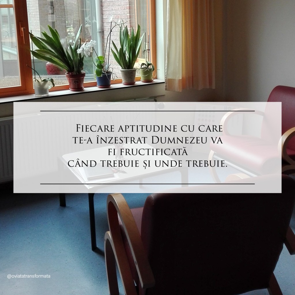 Știi, una e să înțelegi ce ai de făcut și alta e să te și apuci de treabă. Am înțeles în tot acest timp că Dumnezeu are planul Lui pentru viața mea și agățându-mă de ceea ce vreau eu nu-mi va face bine. Dar El orchestrează totul extraordinar, la timpul potrivit și indiferent de stările noastre emoționale.