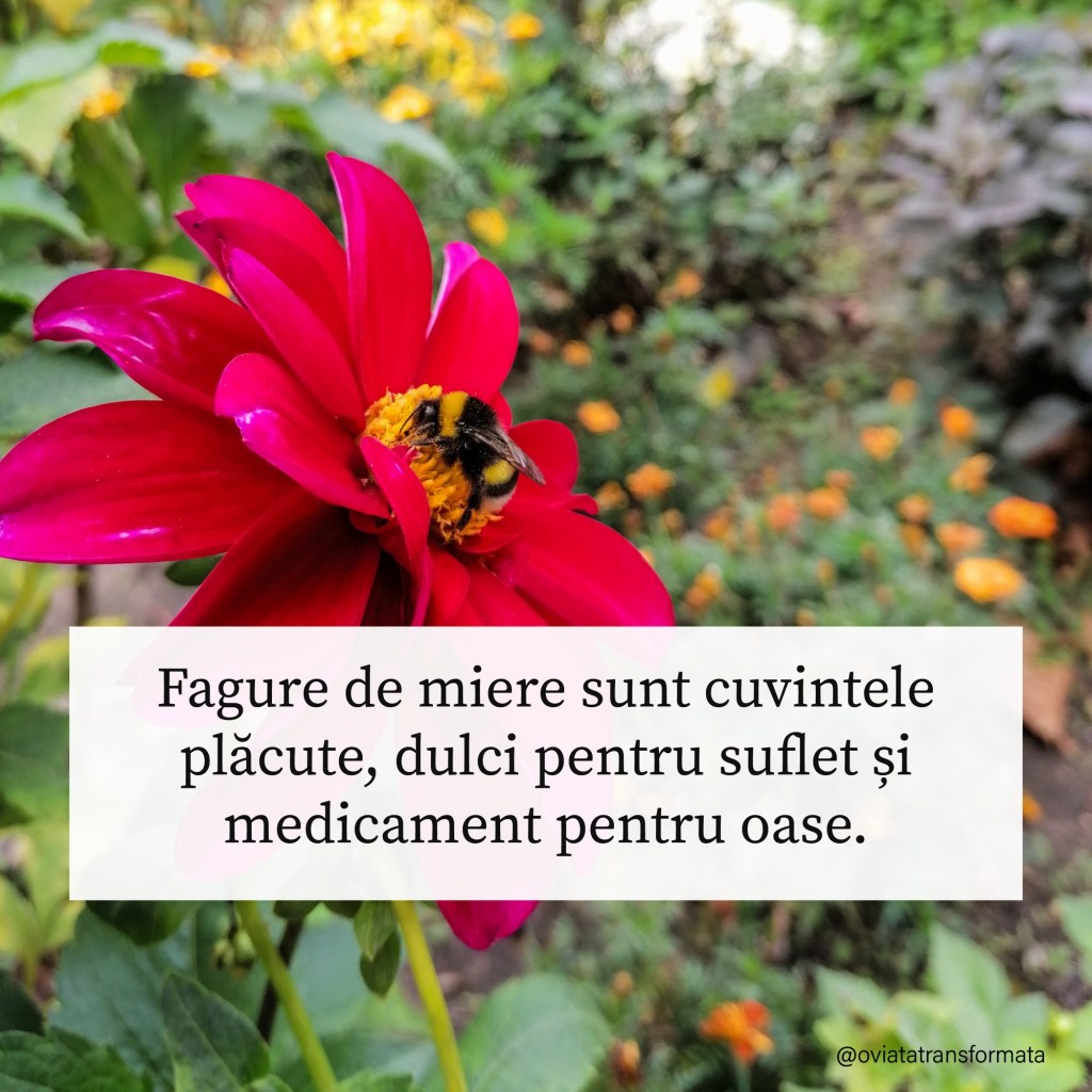 Astfel, dragă femeie, indiferent de rolul pe care-l ai în casa ta sau înafara ei, amintește-ți de acest verset. Meditează la fiecare cuvințel scris și la semnificația lui. (Și chiar de vei spune că nu-ți place mierea, realitatea e aceeași — e dulce, bună și cu proprietăți vindecătoare.)